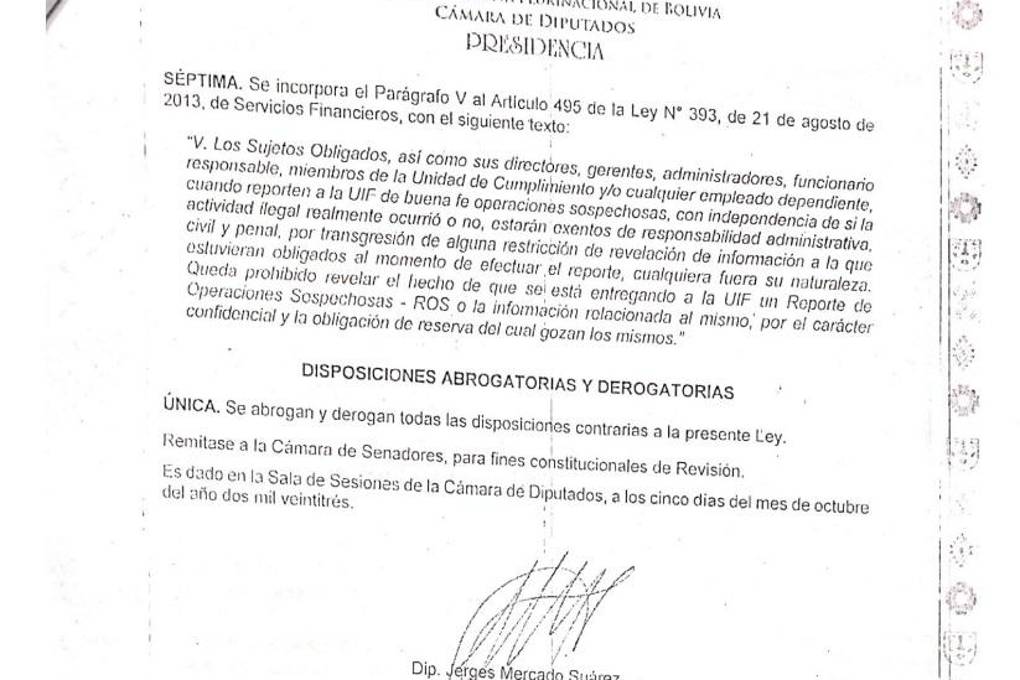 En el documento que fue aprobado en primera instancia por la Cámara de Diputados se lee parte de ese texto.