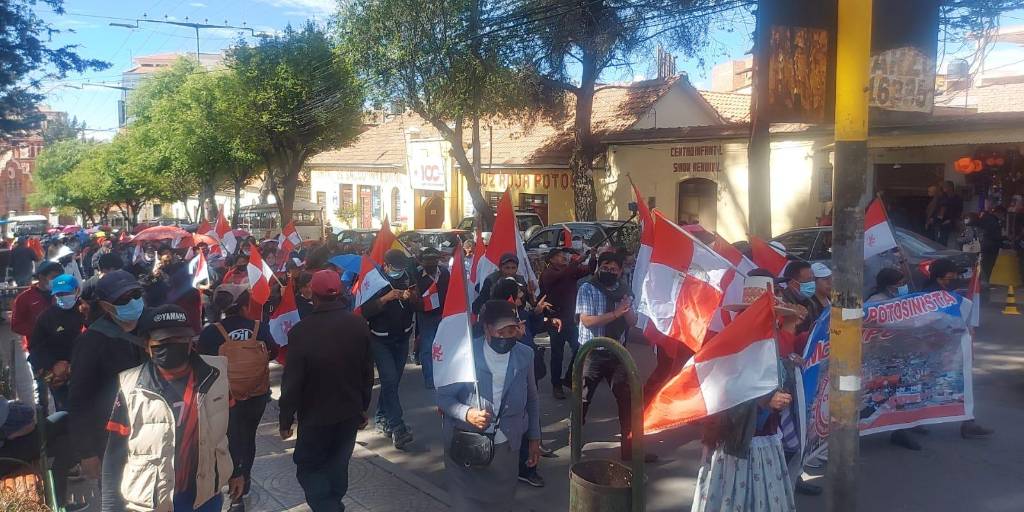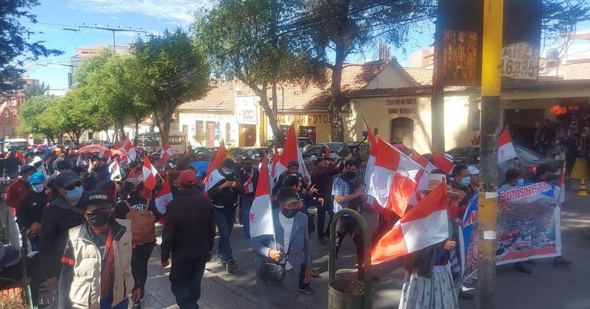 Los manifestantes marchan portando banderas potosinas y la de Bolivia “como símbolo de unidad y rebeldía”, indica la convocatoria del Comcipo.