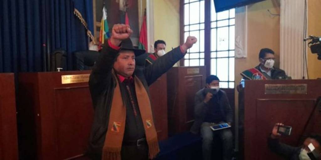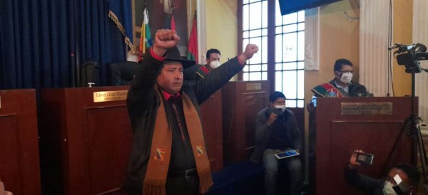 Con los dos puños en alto juró al cargo de gobernador de La Paz, Santos Quispe. La nueva autoridad asumió en medio de una polémica sesión de la Asamblea Legislativa Departamental de La Paz que sufrió un retraso por inconvenientes en la acreditación de los asambleístas del Movimiento Al Socialismo.