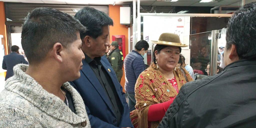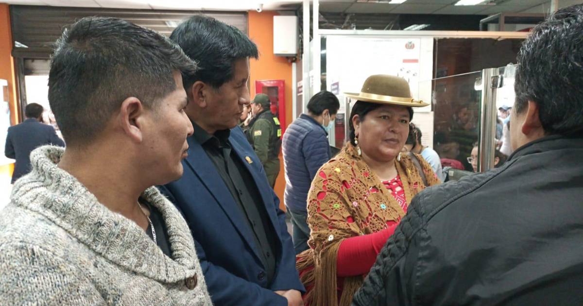 La senadora Simona Quispe y su colega Félix Ajpi, ambos del MAS, llegaron este viernes hasta las oficinas de la Fiscalía Departamental de La Paz para ese fin.