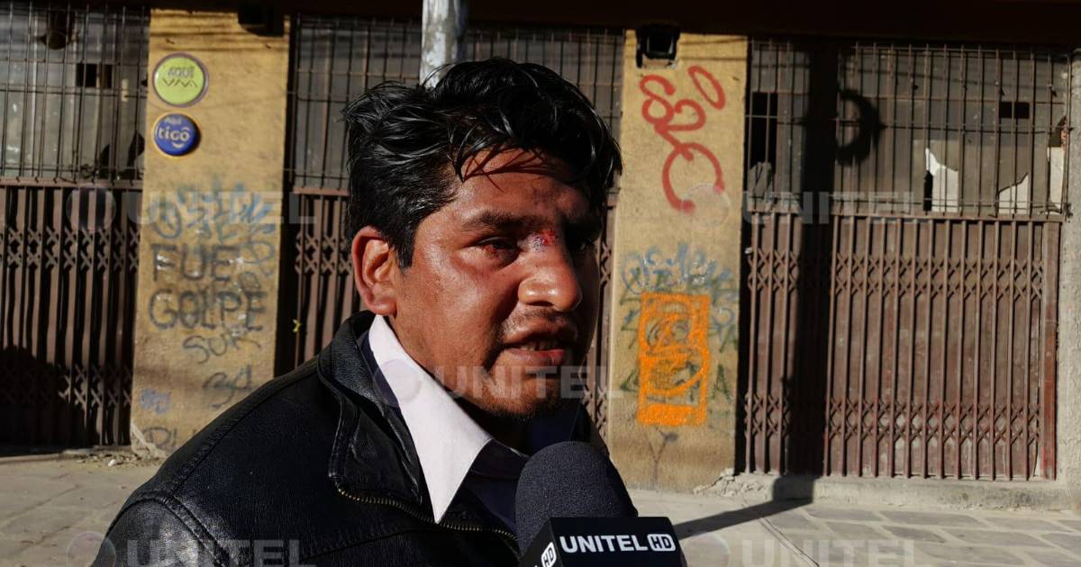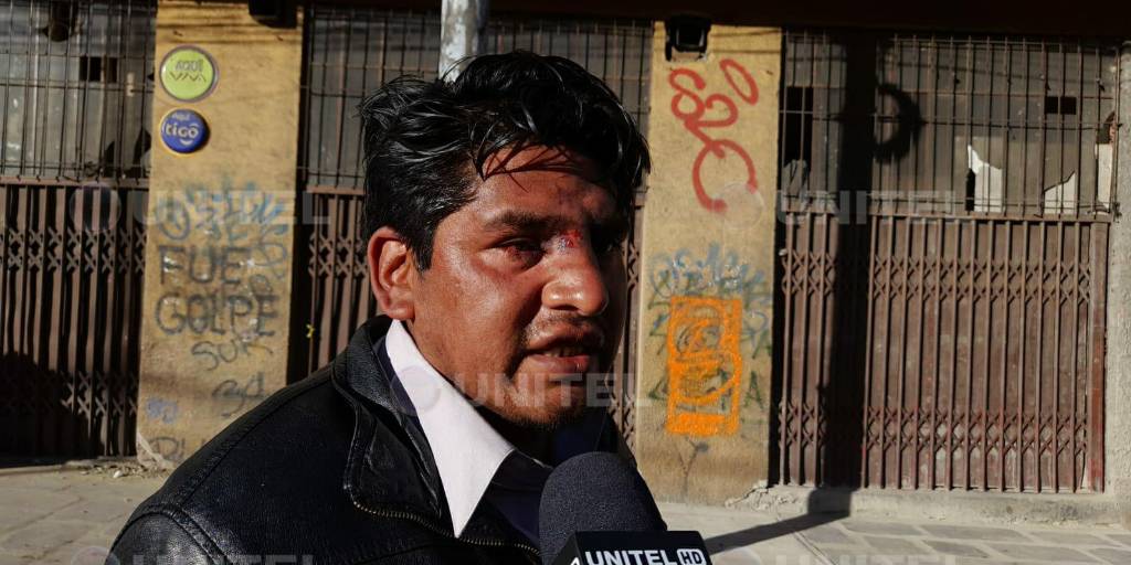 UNITEL reporta tres personas heridas, entre ellas, el secretario ejecutivo de los Gremiales de Bolivia, Toño Siñani, quien fue evacuado del sector ante un golpe de un objeto en el rostro.