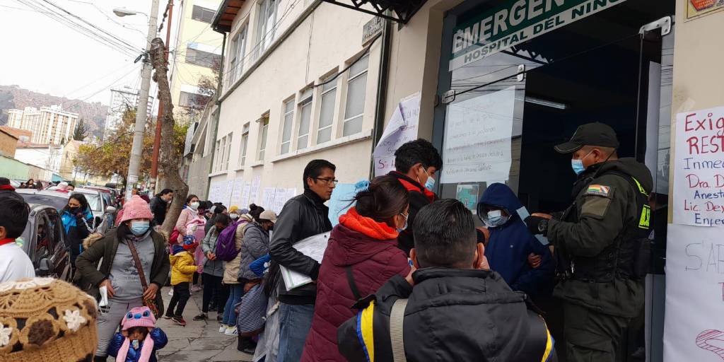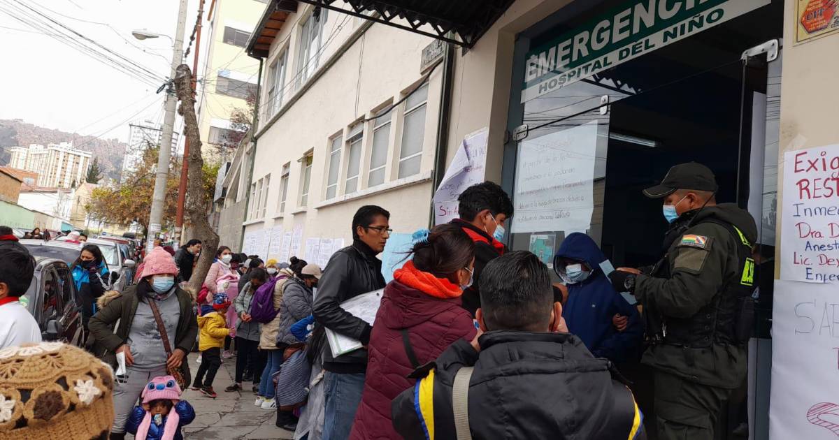 Por incremento en infecciones respiratorias, padres e hijos madrugan por una ficha en el Hospital del Niño de La Paz