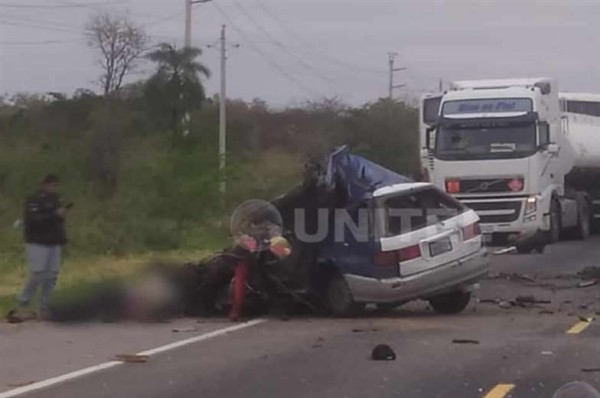 Uno de los vehículos implicados es una vagoneta Ipsum que prestaba un servicio público en la zona (terminó totalmente destruida) y una flota de la empresa Expreso Isoso con la que habría impactado.