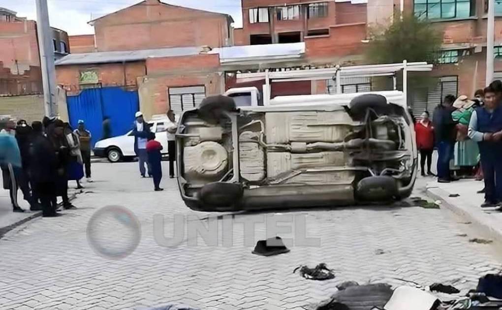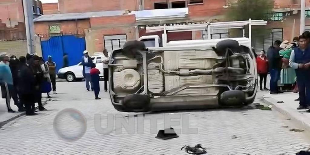 Los vecinos de la zona Alto Mejillones de El Alto procedieron a retener volcar el vehículos de los dos antisociales.