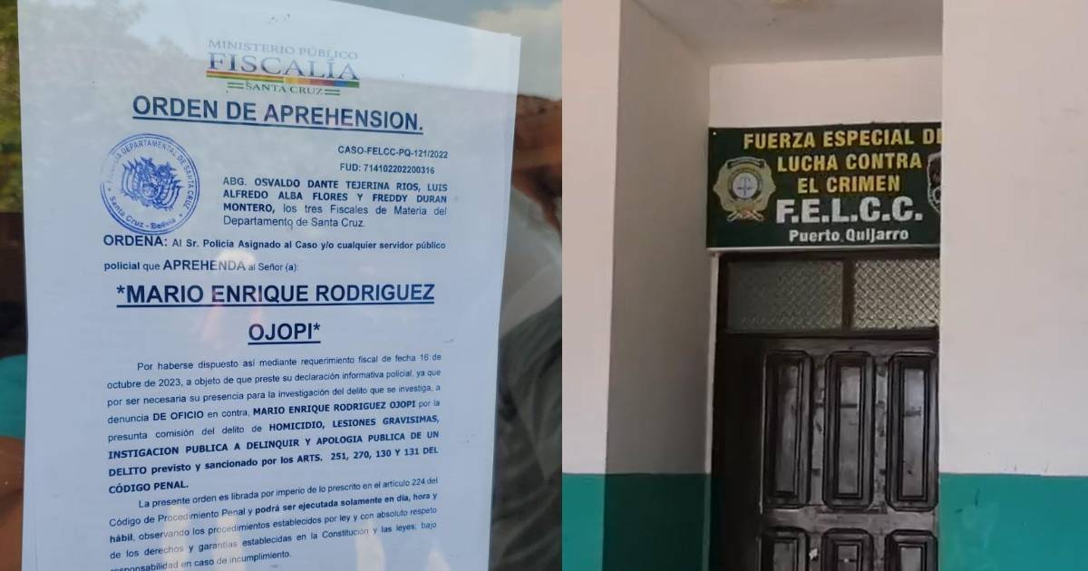 La orden de aprehensión fue emitida por el fiscal Freddy Durán el 16 de octubre. De acuerdo al documento, el cívico está imputado por homicidio, lesiones gravísimas, instigación pública a delinquir y apología del delito.