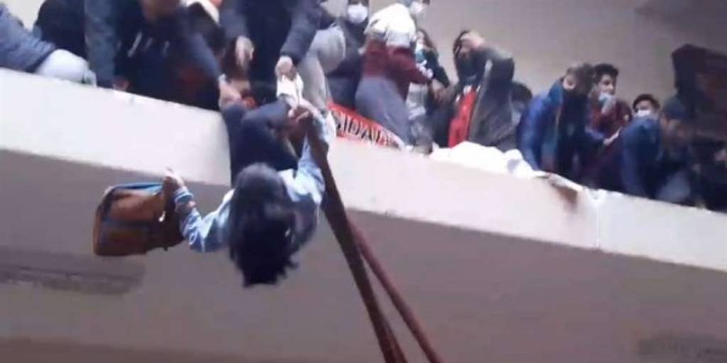 Buscan a la joven que discute momentos antes de la caída de estudiantes en la UPEA
