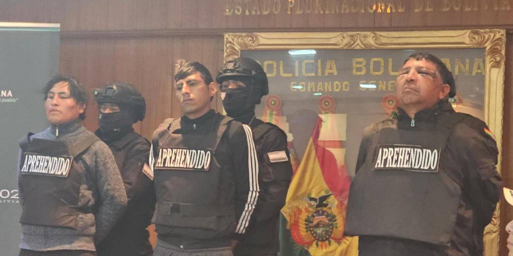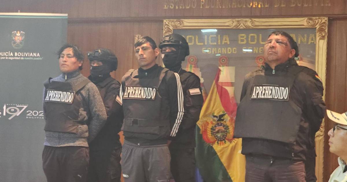 Este lunes se presentó públicamente a tres sujetos acusados de pertenecer a la banda delictiva que intentó atracar una casa de cambios ubicada en la avenida 16 de Julio en la ciudad de El Alto. En este hecho resultó herido de bala un policía que tuvo que ser trasladado a una clínica para su recuperación.