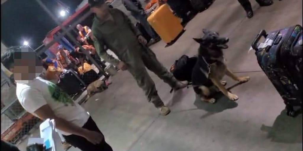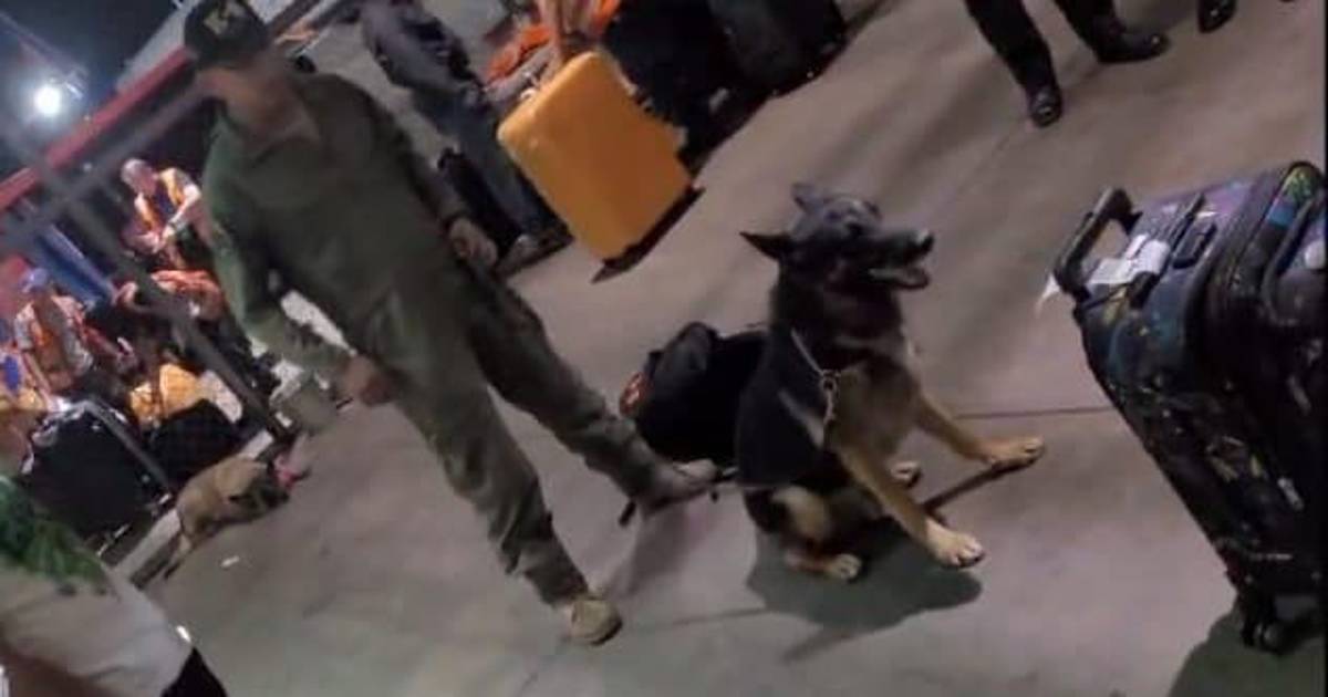 El can antidrogas “Sion” detectó que un ciudadano extranjero trasladaba cocaína entre sus pertenencias. Un efectivo policial, que acompañaba al perro, detuvo al extranjero, quien finalmente fue aprehendido y puesto ante la Fiscalía para que determine su situación legal.