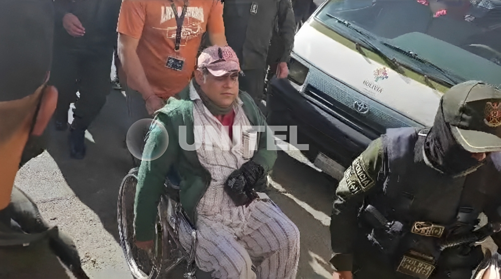 [Foto: Nicolas Cisneros - UNITEL ] / Cesar Apaza ingresa a la cárcel de San Pedro en silla de ruedas