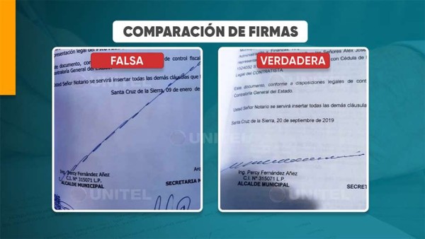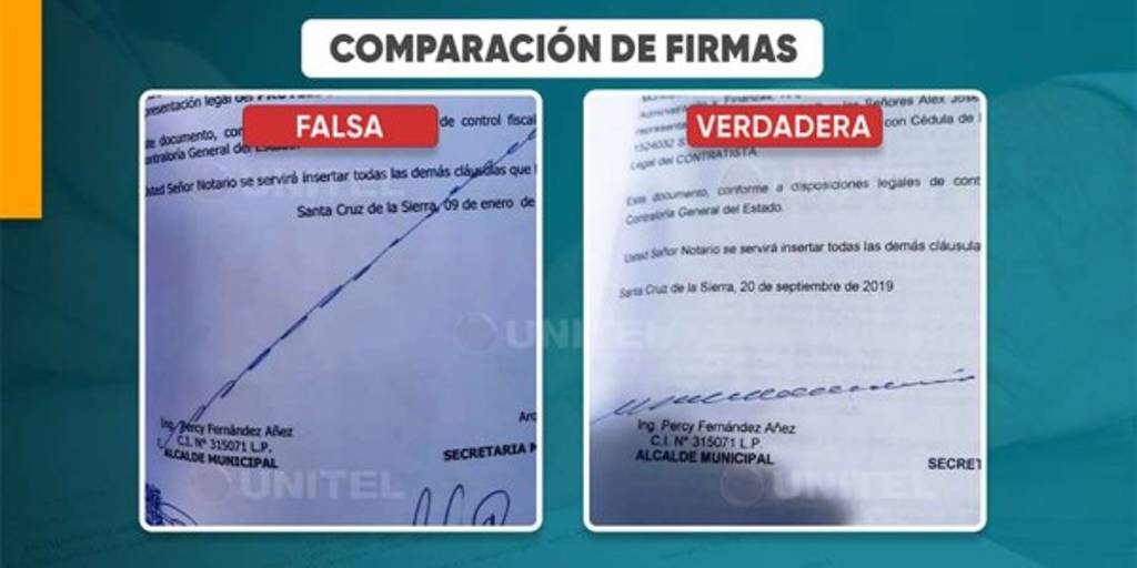 En una auditoría interna realizada por la Alcaldía de Santa Cruz se detectó que en 18 contratos se tendrían irregularidades en la documentación que muestra una firma falsificada del exburgomaestre, Percy Fernández.