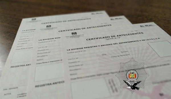 -Antecedentes policiales emitidos por la Fuerza Especial de Lucha contra el Crimen - FELCC, sobre denuncias ante la Policía Boliviana.