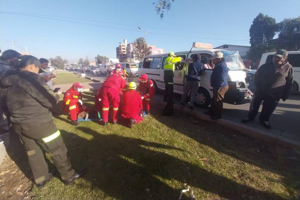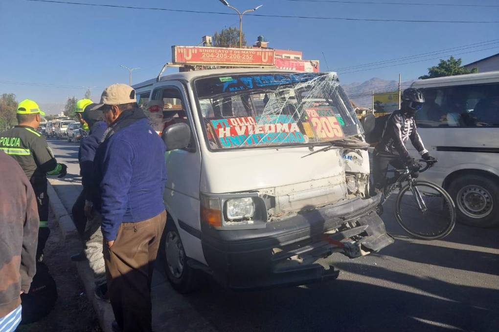El chofer del vehículo de transporte público fue arrestado y subido a una patrulla. En un contacto breve con UNITEL el hombre admitió que estaba corriendo y que no le dio tiempo de frenar.