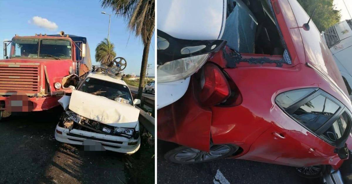 Una de las familiares de los heridos explicó que un camión y tres motorizados fueron los que impactaron. “¿Qué ocasiona estos accidentes?, alta velocidad del camión que no frenó a tiempo”, cuestionó esta persona.