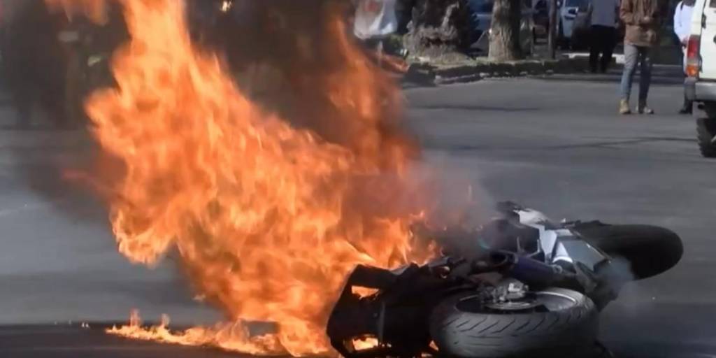 [Foto: UNITEL ] / La moto ardió en llamas en plena vía pública
