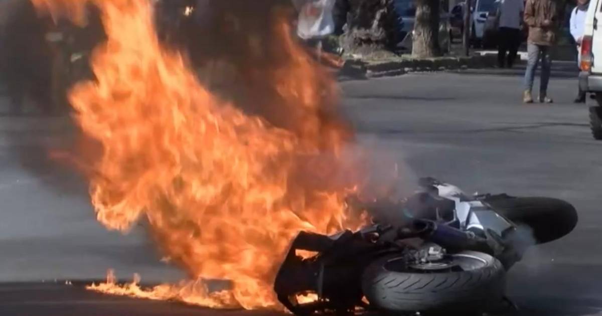 Comerciantes queman la moto de presunto ladrón tras frustrar robo en una tienda de celulares