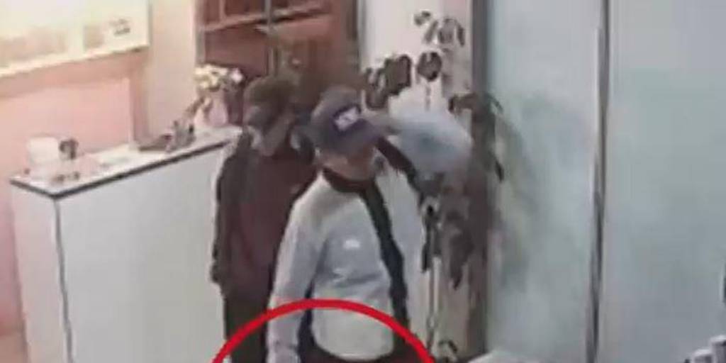 En las cámaras de seguridad se observa cómo los delincuentes, usando mochilas para ocultar el arma y cubriéndose parte del rostro con gorras, ingresaron al lugar y apuntan con un arma al encargado.