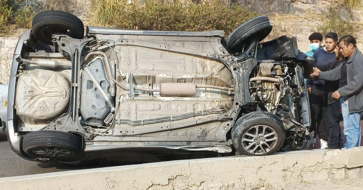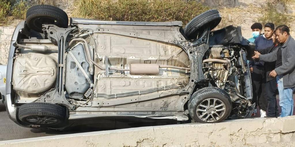El tráfico en la avenida Kantutani, una de principales que conecta el sur con el centro de la ciudad de La Paz, se vio interrumpida de manera sorpresiva cuando un vehículo chocó, volcó y quedó destrozado muy cerca de una pronunciada curva.