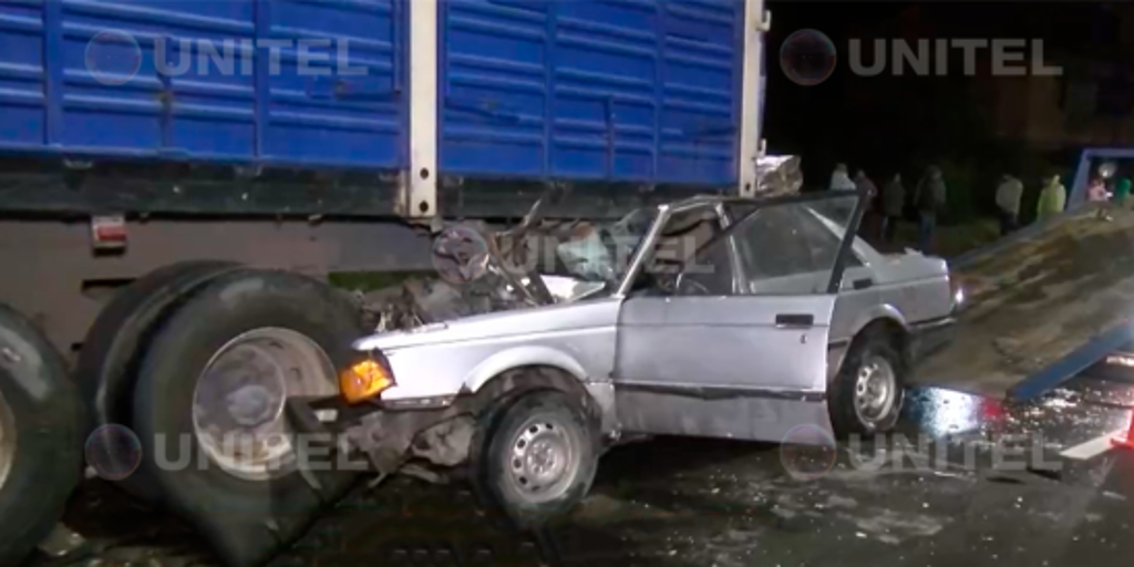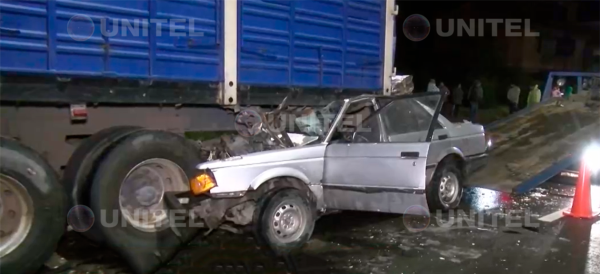 El vehículo quedó prácticamente debajo del camión (Foto: UNITEL)