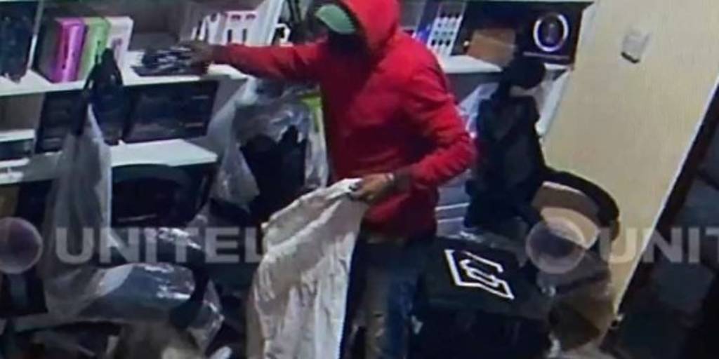 En el video de seguridad se ve como uno de los sujetos, señalado como el autor material, ingresa a la tienda y logra sustraer 300 dólares, 600 bolivianos, además de computadoras y otros accesorios electrónicos que coloca en una bolsa. Los robos ocurrieron la noche del martes y miércoles pasado.