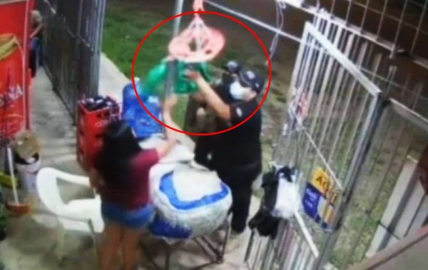 El pasado viernes por la noche cámaras de vigilancia de una licorería captaron el momento en que dos personas bajan de una camioneta blanca y retiran bolsas de coca que se encontraban colgadas en la puerta del negocio.
