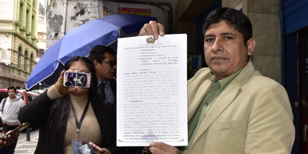 “La denuncia llega contra el fiscal de Santa Cruz Roger Mariaca, quien encabeza una organización criminal. El fiscal proyectista Juan Raúl Rivero Saucedo alias el ‘osito’; Amparo Canaviri; y el señor fiscal Roger Mariaca alias ‘el chino’; el diputado evista, Patricio Mendoza y al señor Reynaldo Ezequiel y su esposa Evelin García Villarroel”, dijo Cuellar tras presentar la denuncia penal en la Fiscalía.