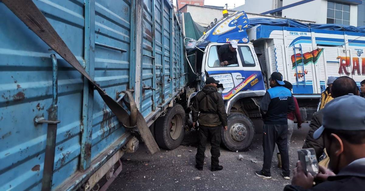 Uno de los testigos relató a la red UNITEL que el hecho sucedió a las 06:00 de este lunes, cuando uno de los camiones que llegaba de la Asunta, en los Yungas de La Paz, giró a gran velocidad y se estrelló contra el otro motorizado.