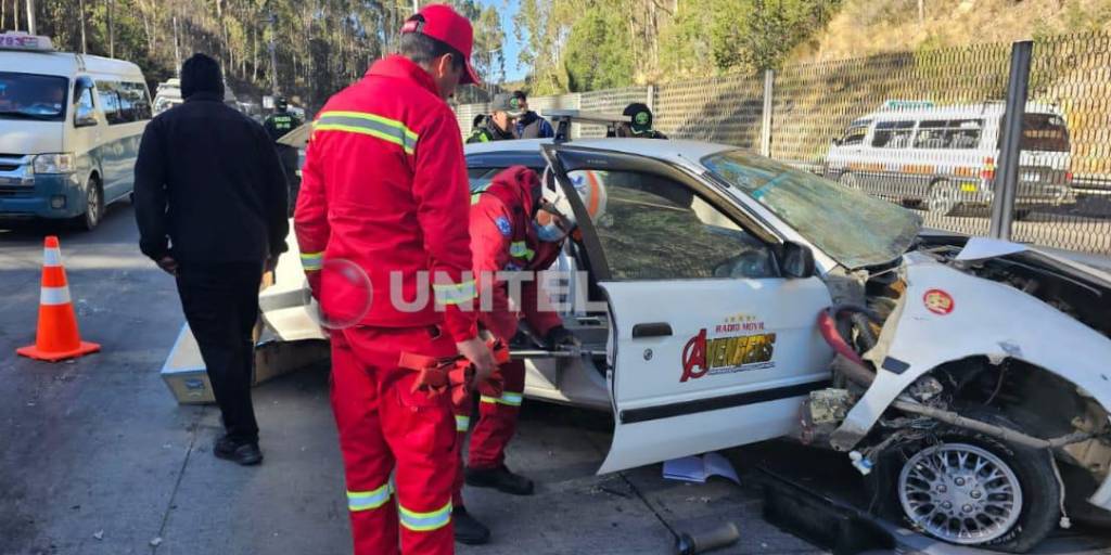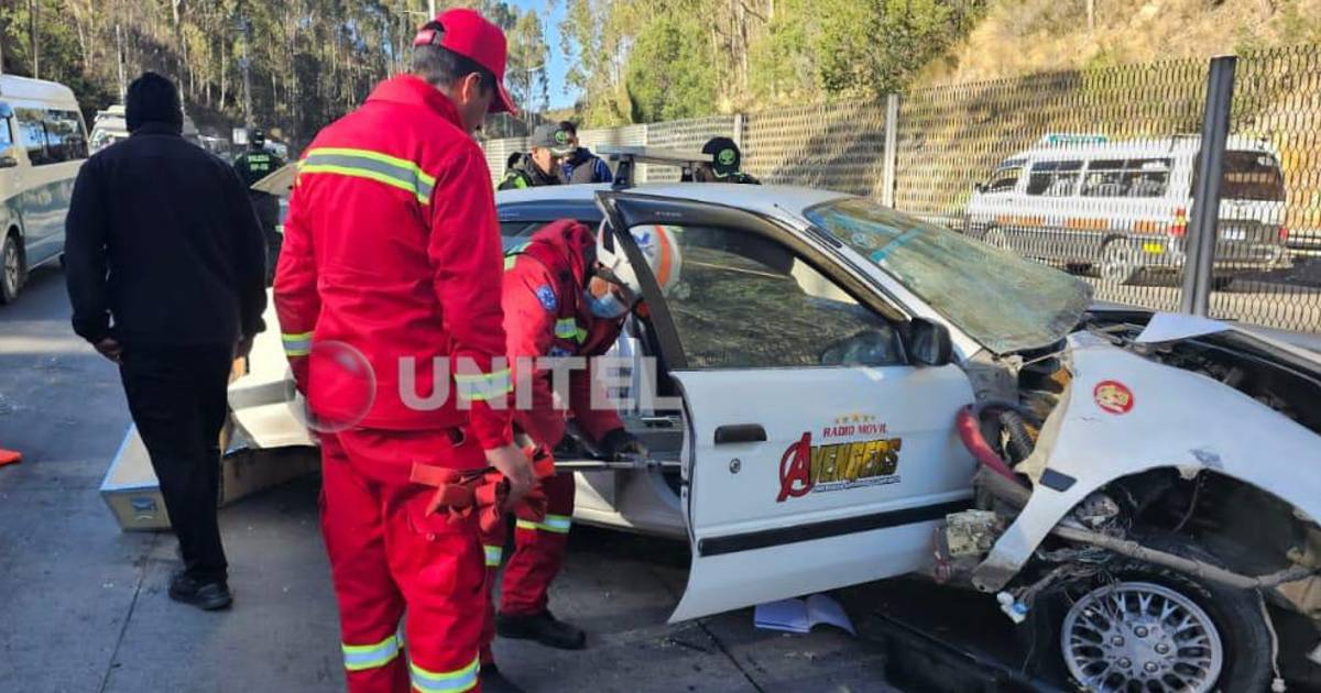Este viernes se registró un accidente de tránsito en la autopista La Paz - El Alto a la altura de la conocida curva del diablo. Tras el hecho, dos personas quedaron atrapadas entre los fierros de un vehículo que perdió el control e impactó contra un protector vial.