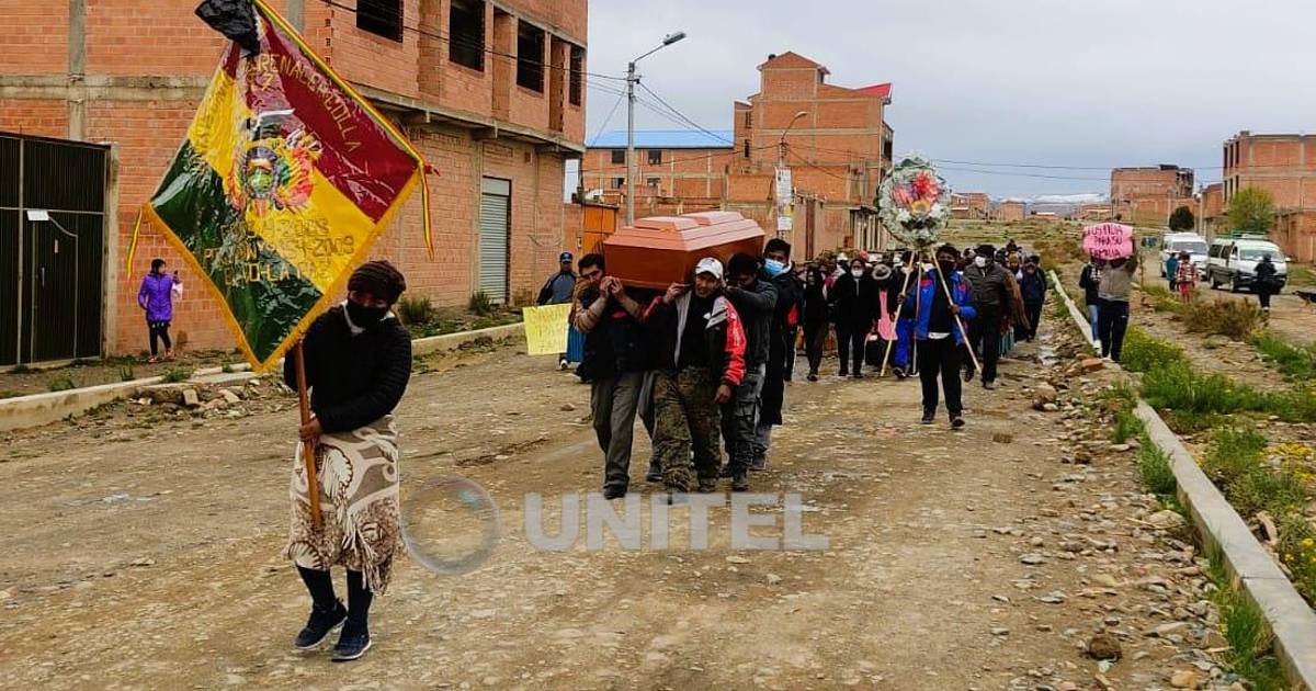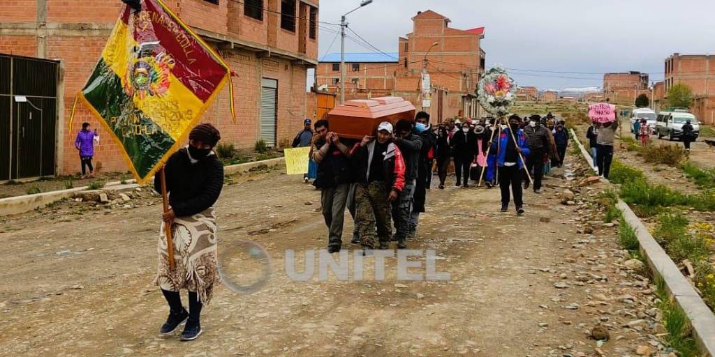 [Heidy tarqui - UNITEL] / Vecinos de Renacer llevan los restos de Amacías por las calles de su barrio para exigir justicia.