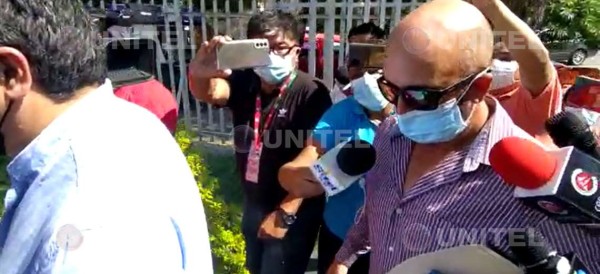 El hombre llegó con gafas oscuras y con un folder amarillo en el brazo. Estaba acompañado de Jerjes Justiniano, quien también es abogado de la exautoridad municipal que se encuentra con detención preventiva en Palmasola.
