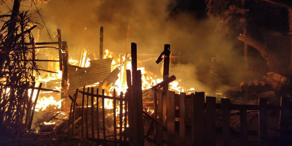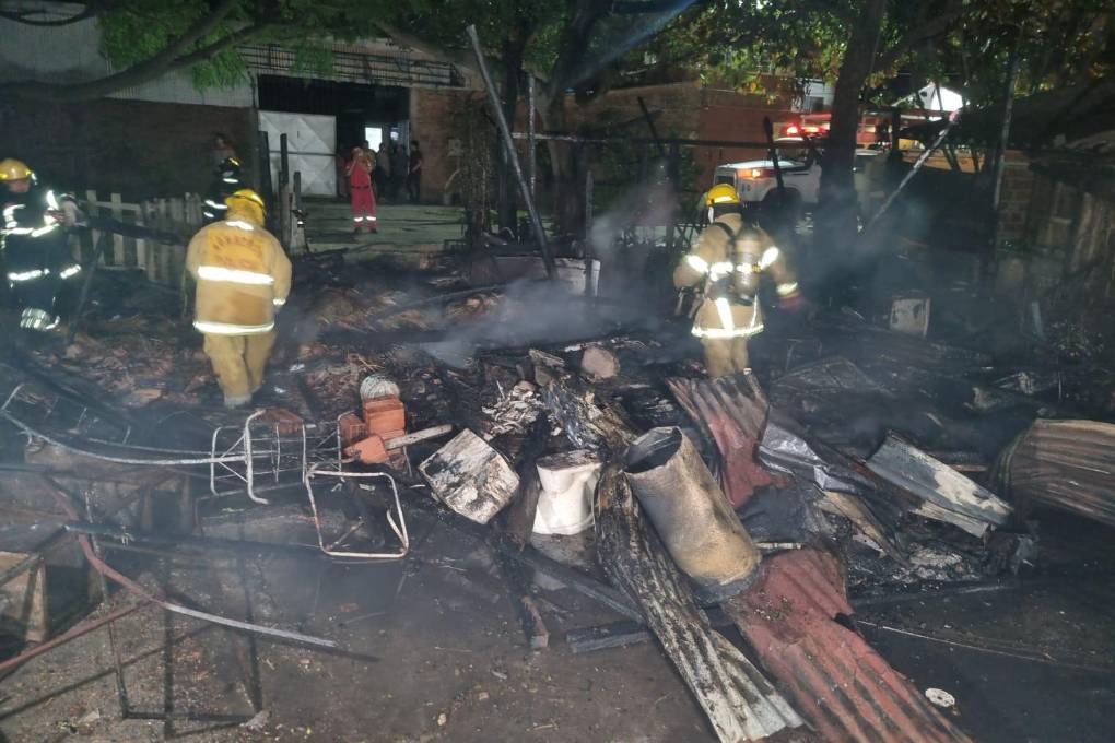 Ante la alerta, bomberos de la Policía, voluntarios Fundasol y equipos de Emergencia Municipal llegaron hasta el lugar donde el fuego ya consumía la vivienda precaria.
