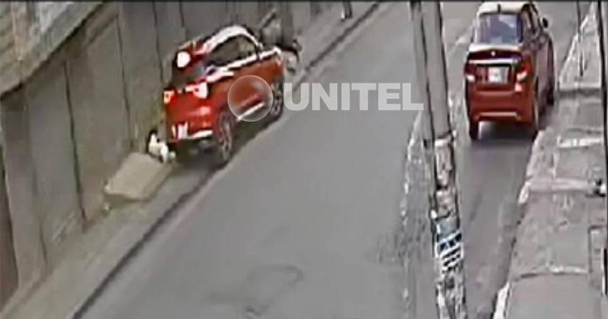 [Foto: Captura de video] / El chofer huyo del lugar tras atropellar a las dos personas