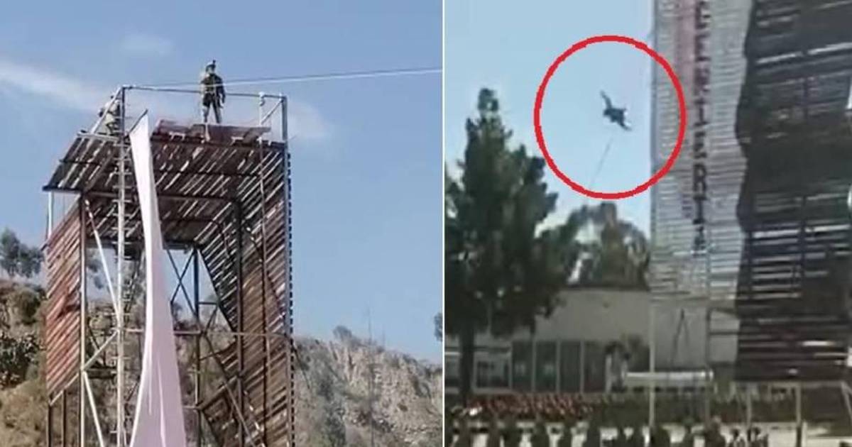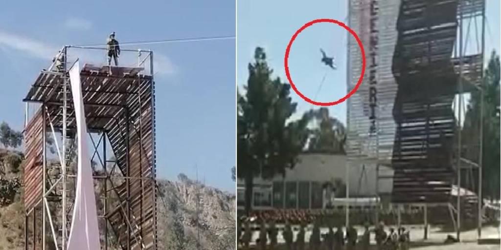 Un nuevo video se filtró varios días después de haberse viralizado el accidente de los dos cadetes del Colegio Militar mientras realizaban el denominado “salto de la muerte” desde una torre.