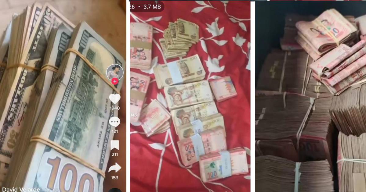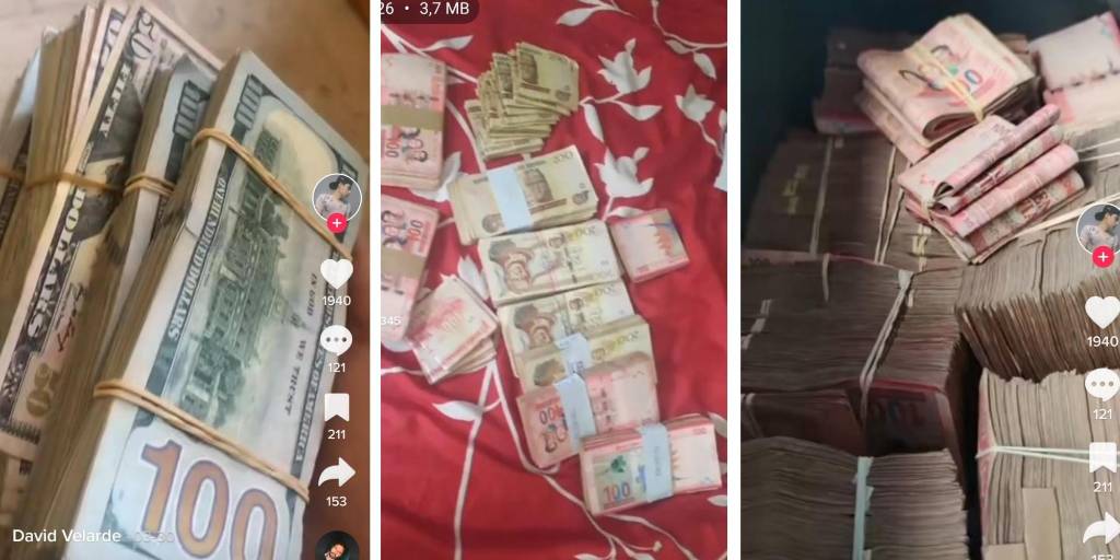 En todos sus videos, el joven muestra fajos de billetes, algunos en dólares y otros en bolivianos. Una de las primeras situaciones que llamó la atención de las autoridades por lo que procedieron al arresto del sujeto. Algunos de los videos son filmados en vehículos.