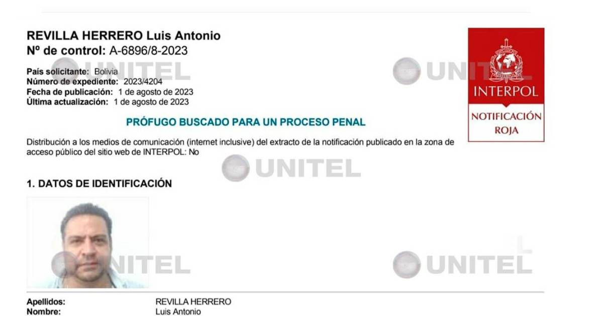 La Organización Internacional de Policía Criminal (Interpol, por sus siglas en inglés) activó la notificación de sello rojo para localizar al exalcalde del municipio de La Paz, Luis Revilla, quien está buscado por la justicia boliviana dentro del caso buses Pumakatari.
