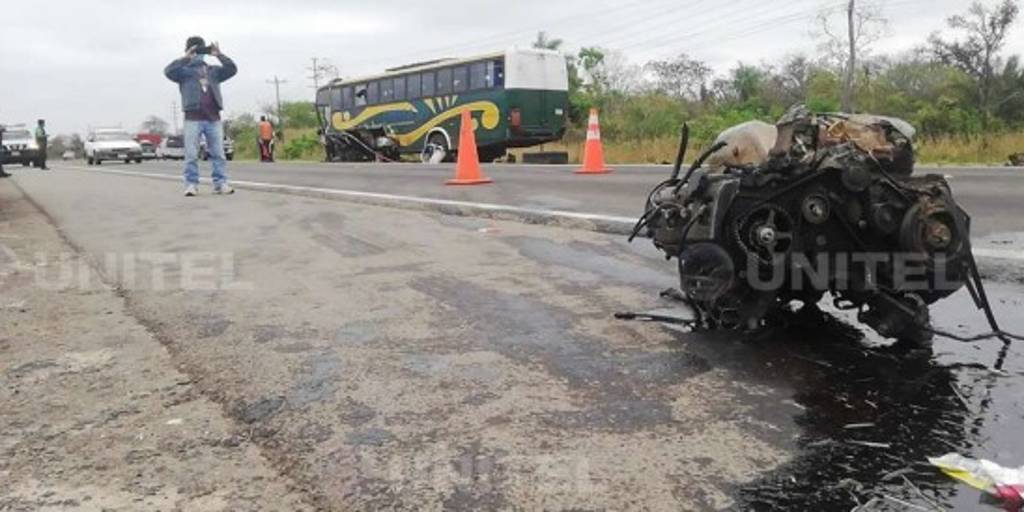 Una vagoneta de transporte público y una flota chocaron de frente en un hecho que dejó como saldo cuatro personas fallecidas y seis personas heridas, ocurrido la mañana del jueves en el kilómetro 34 de la carretera Santa Cruz - Camiri.