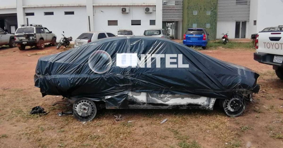 El vehículo que se encontraba en dependencias de la Estación Policial Integral de San Matías el cual se encontraba precintado y cubierto ya que en el interior aún permanecían los restos óseos de las víctimas.