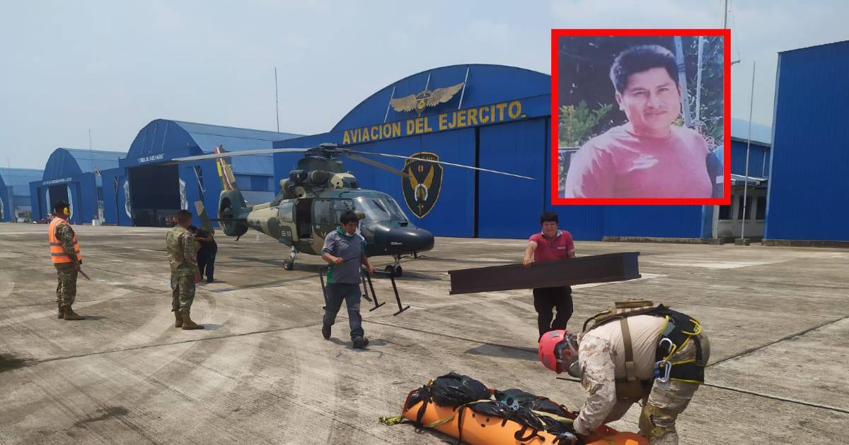 El cuerpo de David Rondan Valencia, de 36 años de edad, fue llevado en helicóptero hasta Chimoré, posteriormente trasladado vía terrestre hasta Quillacollo