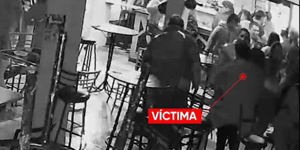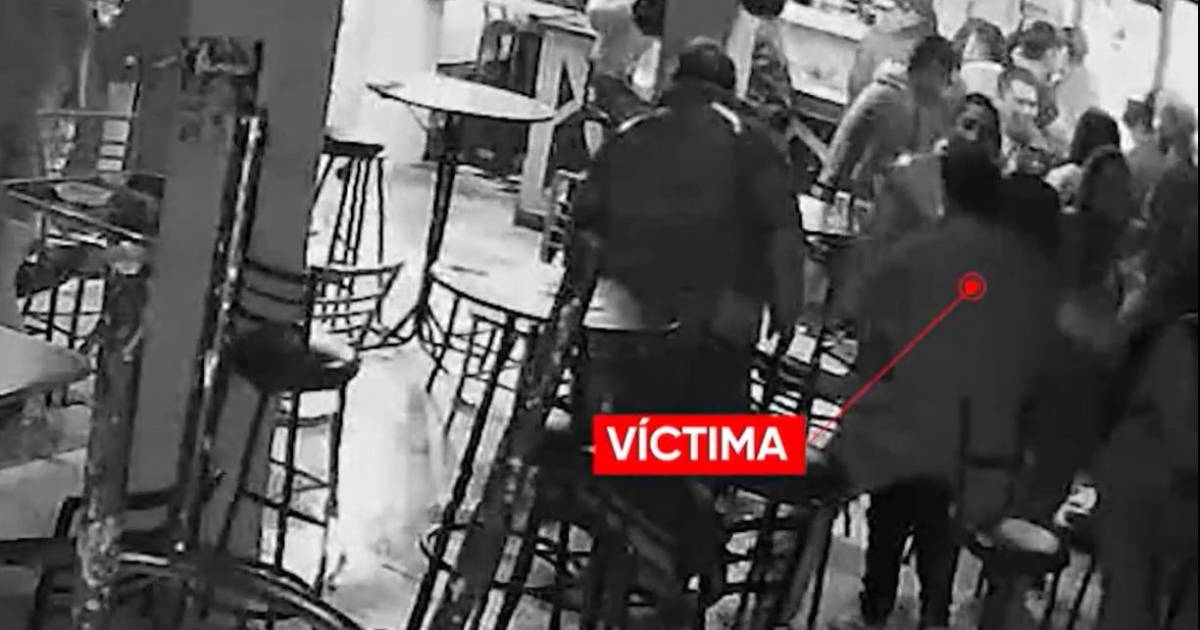 Cámaras de seguridad de este local, captaron el momento en el que el joven cae de una de las sillas, donde observa como las cuatro personas que estaban con él empiezan a rebuscar entre sus pertenencias.