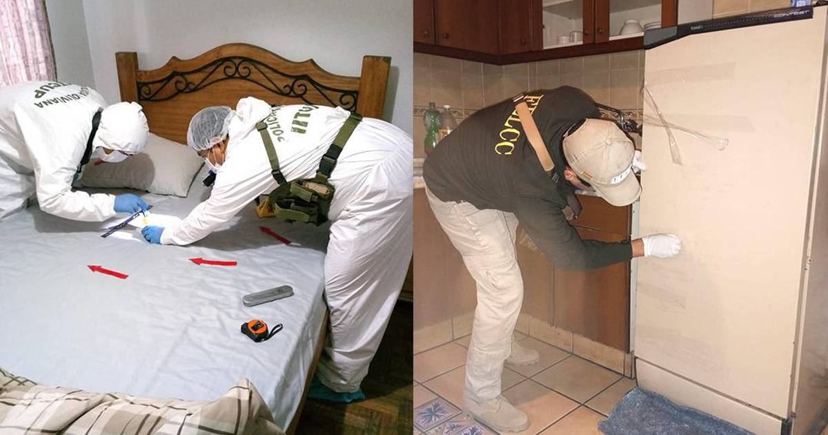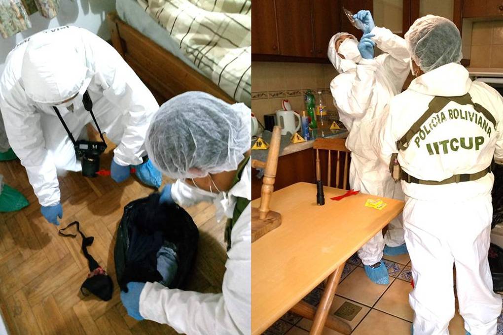 Personal del Instituto Técnico Científico de la Universidad Policial realizó un trabajo técnico en el inmueble donde fue encontrado el cuerpo descuartizado de Rosa Cabezas, en la ciudad de Cochabamba.