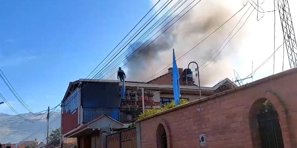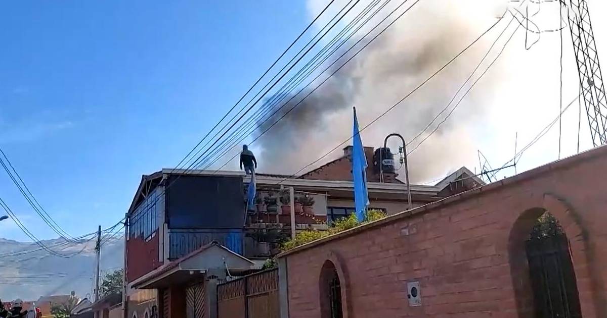 La densa humareda que salía de la parte superior de un domicilio alertó a los vecinos de un incendio que se registraba en el inmueble ubicado en la zona de Sarcobamba, en Cochabamba.