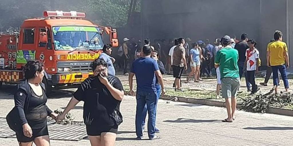 Los vecinos alarmados se movilizan y tratan de apagar las llamas que rápidamente consumen diversos productos que hay en el negocio. Un grupo de bomberos ya llegó al lugar.