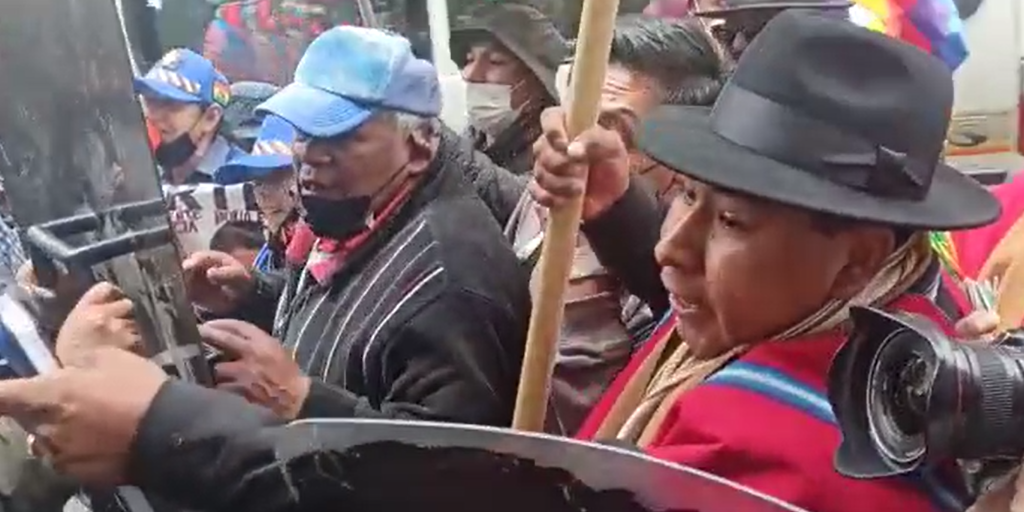 [Foto: UNITEL] / Personas exigian el retiro de los asambleístas de oposición