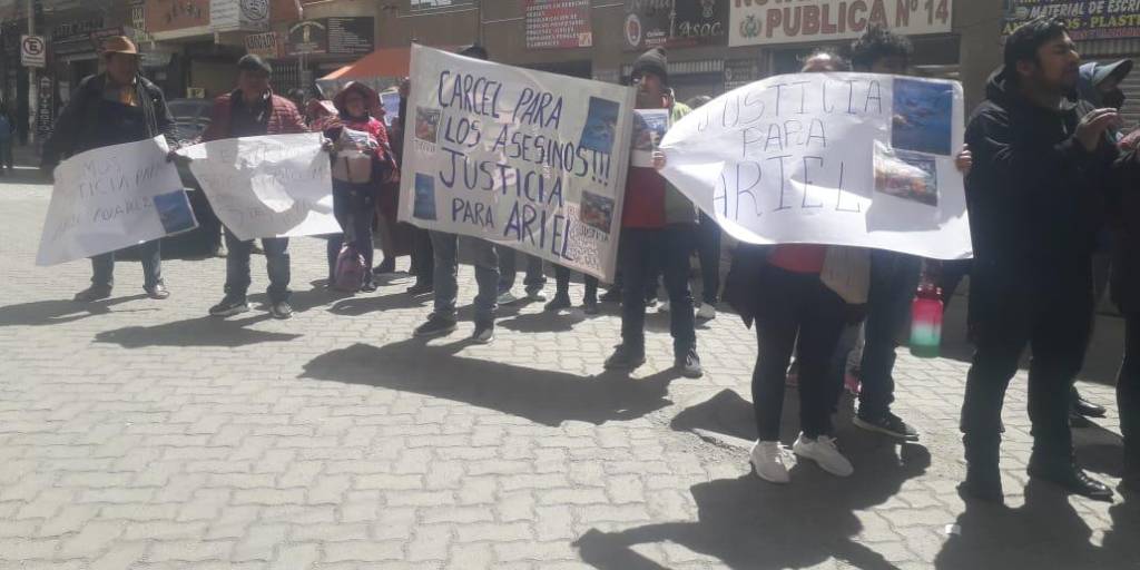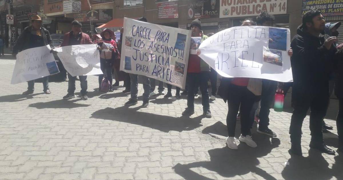 Este martes, los allegados al hombre dieron una pausa al velorio para dirigirse hasta las puertas del Juzgado de El Alto para realizar una protesta reclamando justicia.