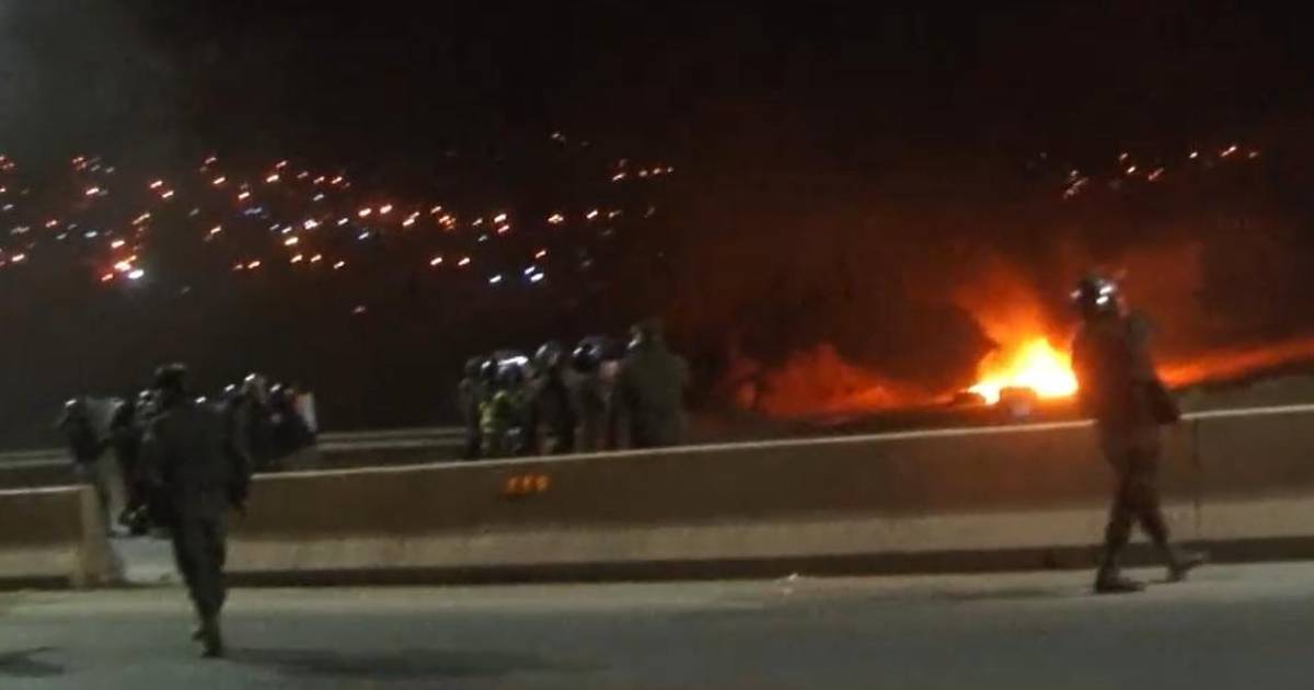 Los sujetos empezaron a lanzar petardos, piedras, armaron barricadas, prendieron fuego en los alrededores, para evitar que los policías puedan acercarse al camión.