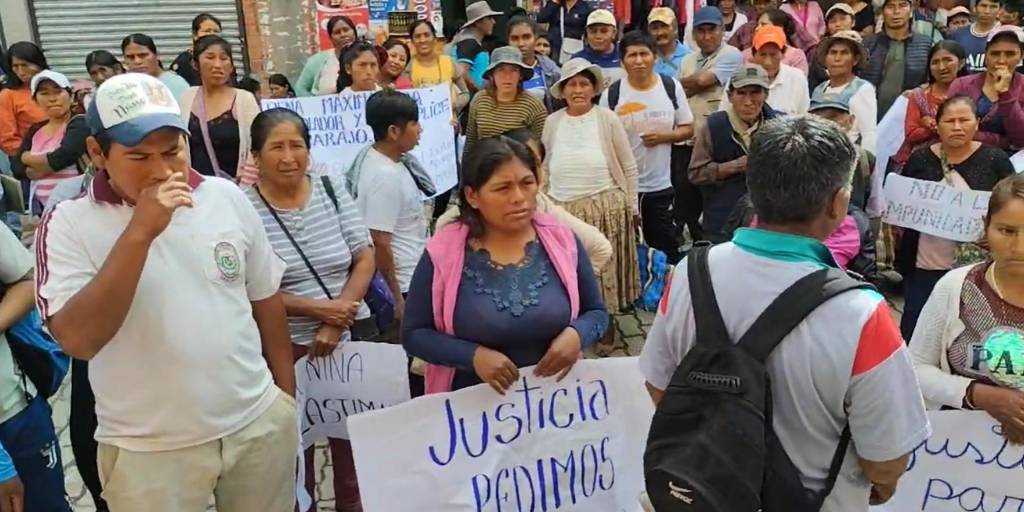 Los pobladores enardecidos y con pancartas de pedido de justicia, se trasladaron hasta el municipio central para exigir a las autoridades policiales una sanción contra la concubina del acusado, quien está en calidad de investigada por presuntamente encubrir este hecho.