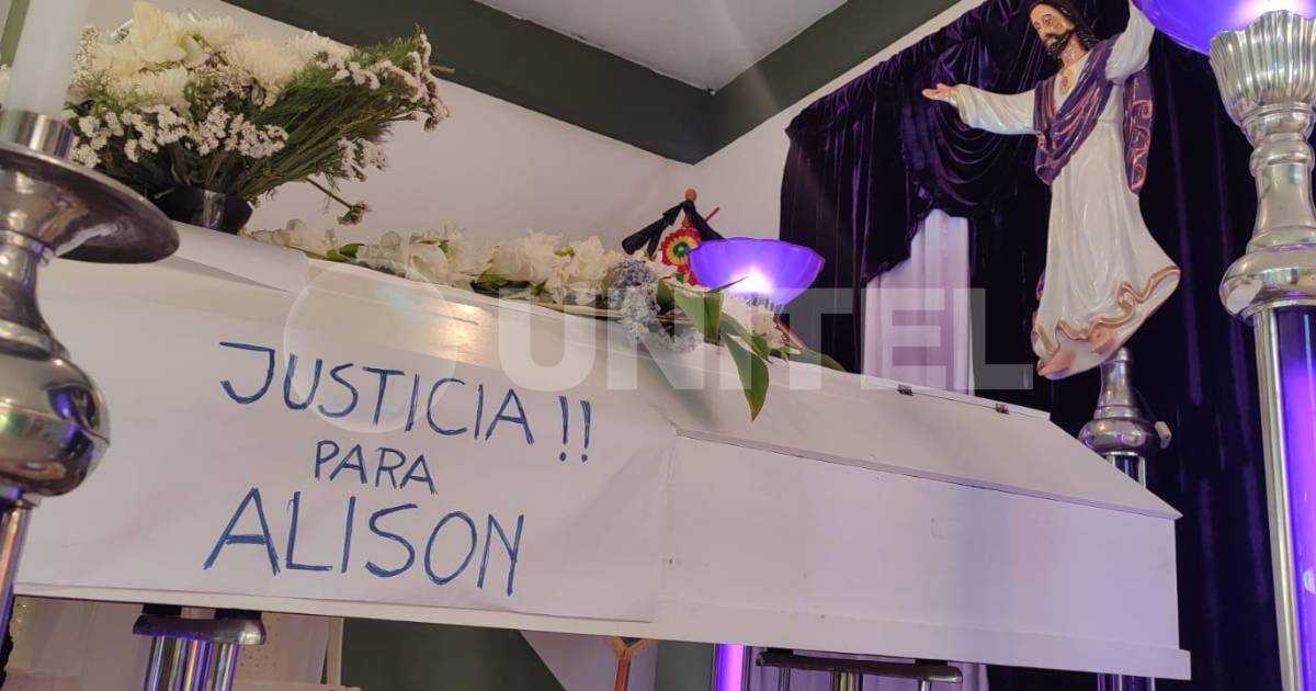 Las oraciones van acompañadas con los pedidos de justicia en las últimas horas de su velorio. Se han pegado carteles en las paredes para reclamar que la Policía halle al responsable de la trágica muerte de Alison, uno de los letreros pegados en el féretro reseña: “¡Justicia para Alison!”