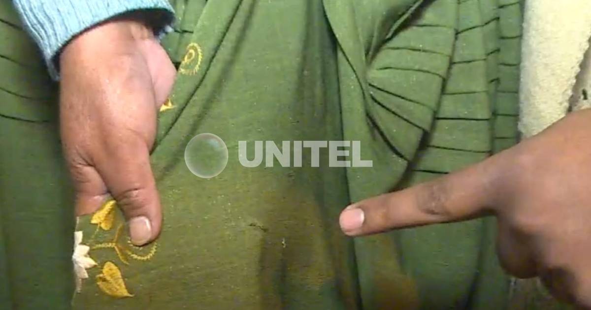 [Foto: Edwin Chura - UNITEL ] / La bala dejó un orificio en la pollera de la mujer