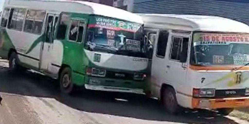 Dos micros de transporte público protagonizaron un hecho de tránsito la tarde de este domingo en el barrio Guapurú, zona del Plan Tres Mil en la capital cruceña.