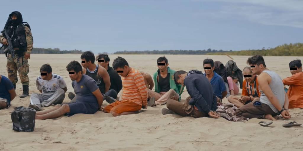 [/] / Grupo de personas aprehendidas en el último operativo contra la minería ilegal en el río Madre de Dios
