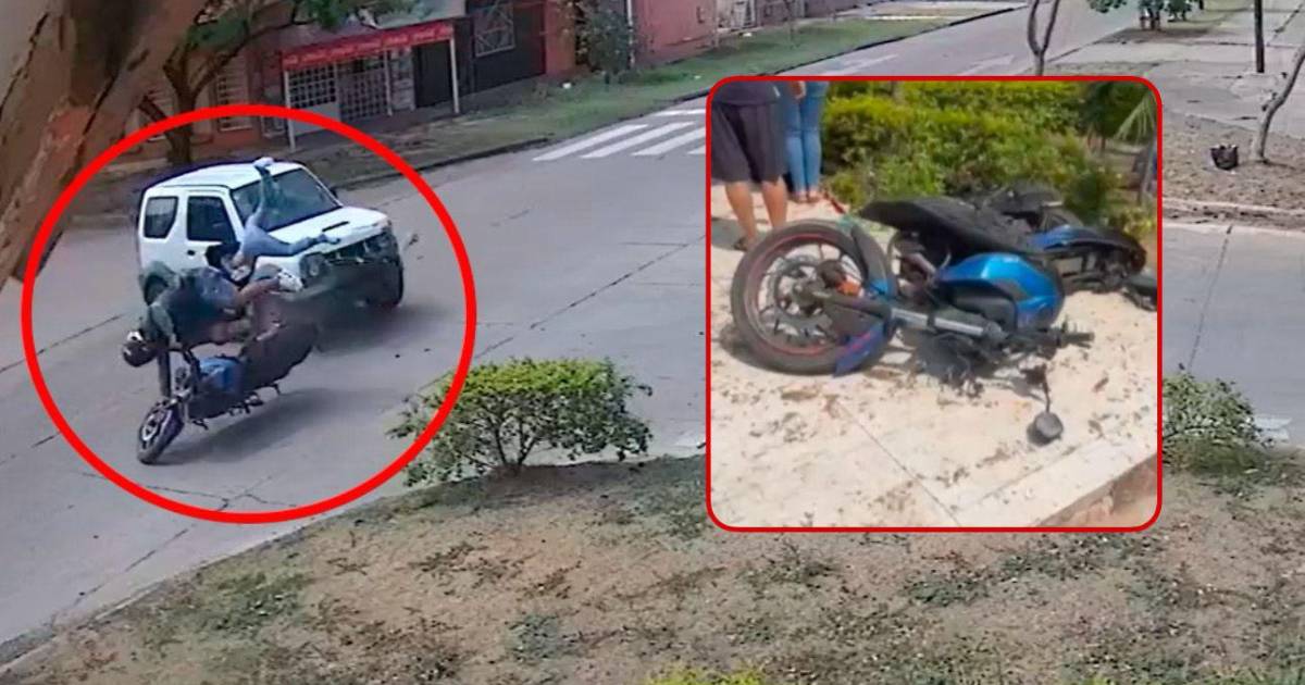 Una cámara de seguridad logró captar el momento exacto en el que la motocicleta choca con el motorizado en una intersección, donde producto del fuerte golpe, ambos ocupantes salen prácticamente volando y caen con fuerza contra la acera cerca de una vivienda.